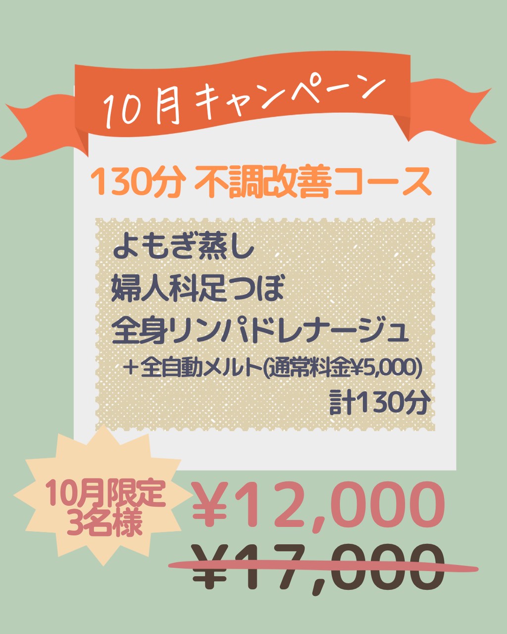 🍂10月限定キャンペーン🍂「130分 不調改善コース」💎特別価格:¥17,000→¥12,000(税込)